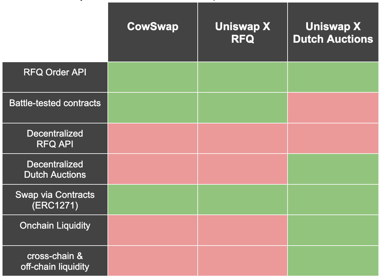CowSwap has proven its model with over $15 billion in transaction volume and employs a Request For Quote (RFQ) system.